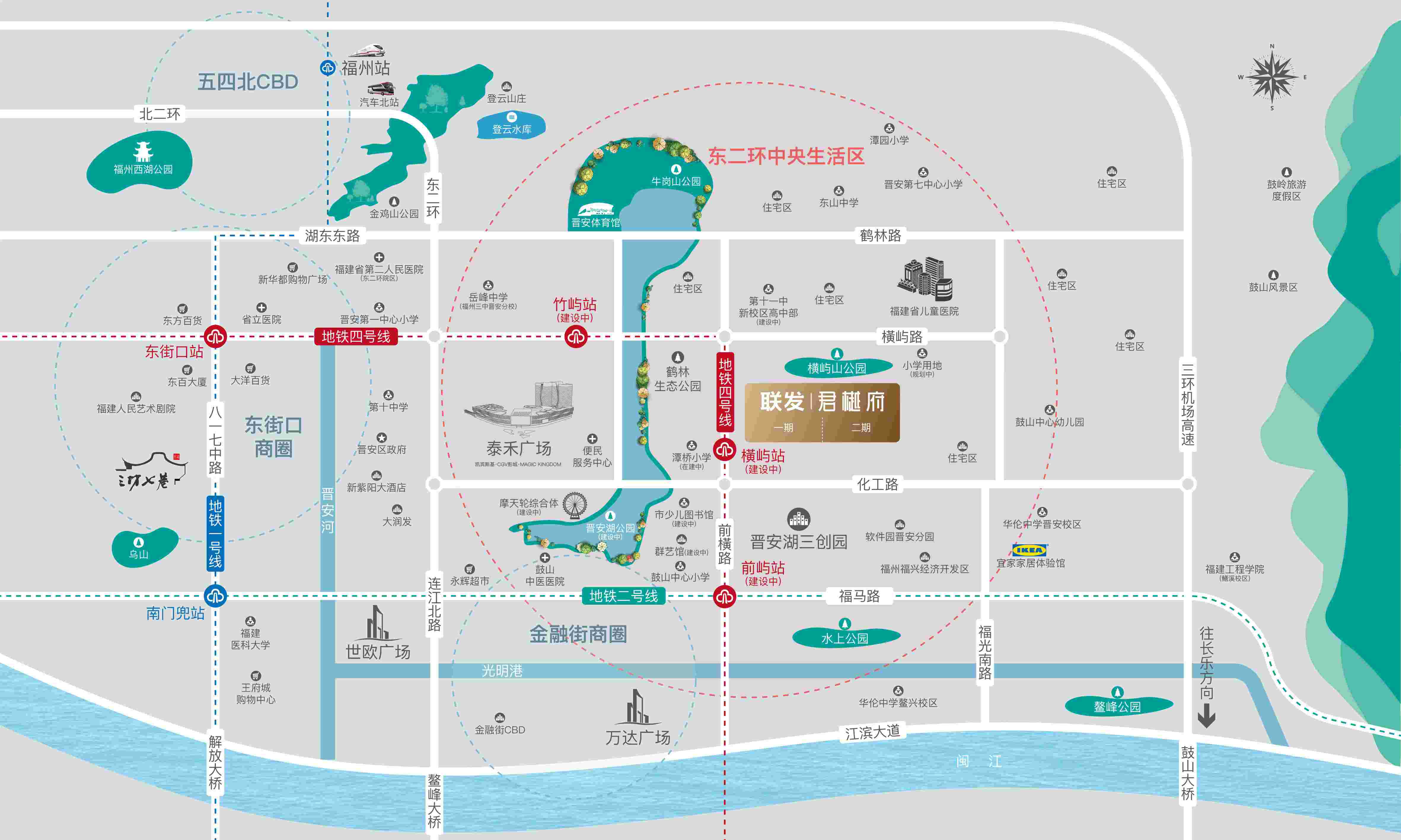 黄金地段:联发·臻榕府傲立福州东二环核心区域,汇聚城市最精华资源。东二环泰禾广场、晋安体育馆、鹤林生态公园等顶级配套环伺,地王频现,品牌开发商竞相入驻,彰显区域无限潜力与价值。