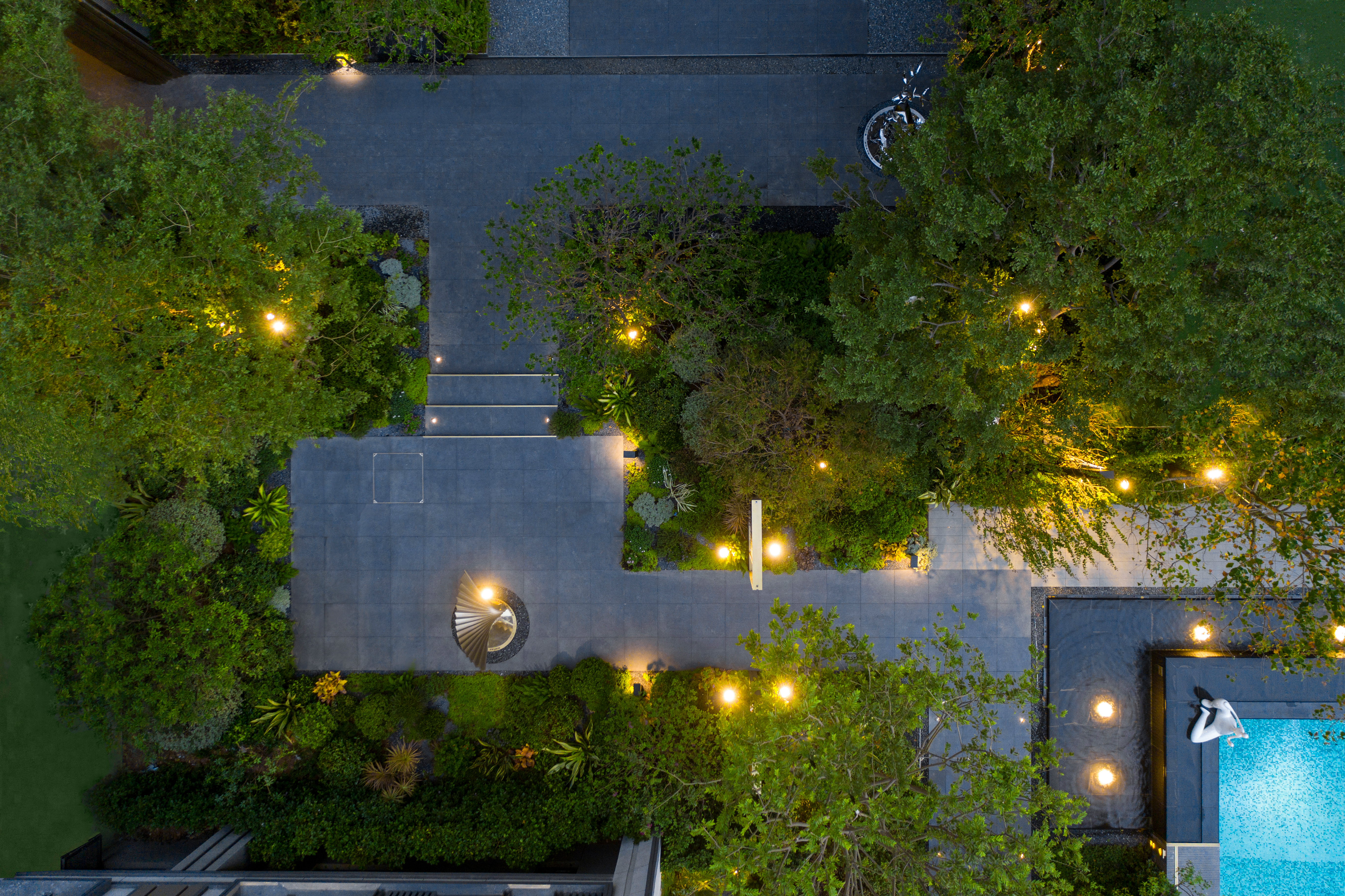 龙湖·观宸|云玺的园林景观设计灵感源自全球鼎级安缦酒店,每一处细节都透露出对度假场景的精心考量。宽约20米的七星级酒店迎宾大门,不仅隔绝了城市的喧嚣,更营造了一种隐奢的居住氛围。园林中大量运用金属与石材的融合,展现出精奢与艺术的美感。错景设计、金属小品与多重花境的巧妙结合,让每一次穿行都成为一场穿越风景的旅行。
