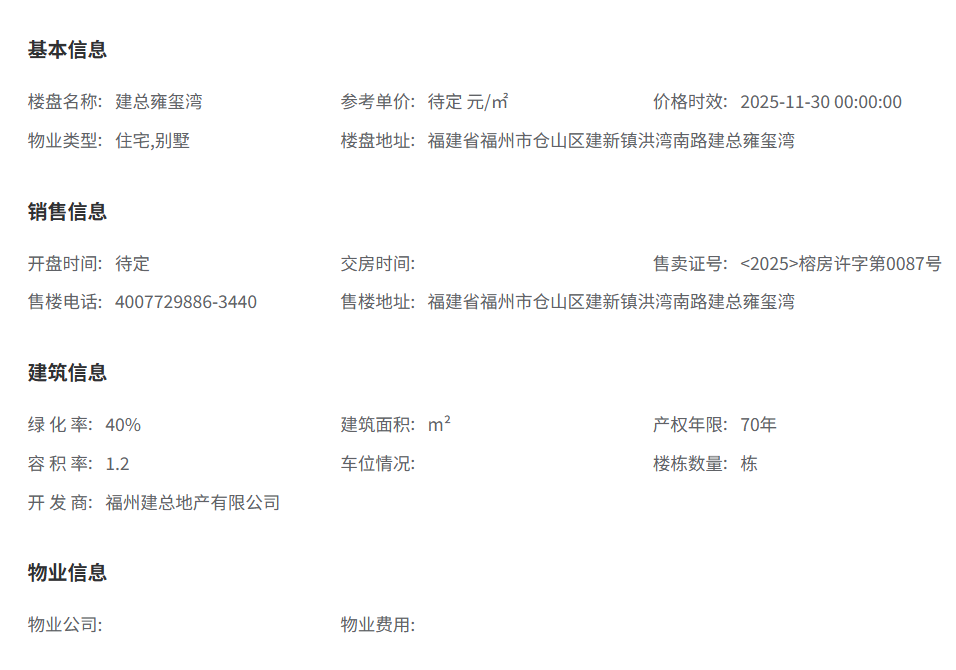 建总雍玺湾的开发商是福州建总地产有限公司,是根正苗红的福州本土国企。