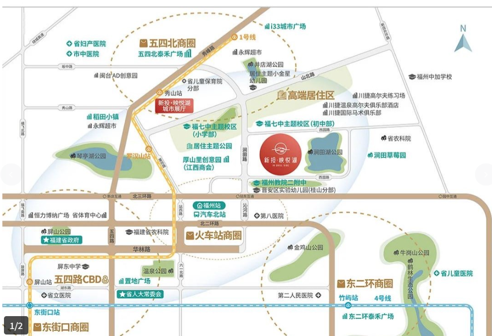 新投映悦湖位于福州市晋安区新店镇秀峰路208号,是福州五四北板块2025年备受关注的新盘之一。项目由福建新投发展有限公司开发,这是一家省属国有企业,这一背景为项目增添了不小的安全保障。