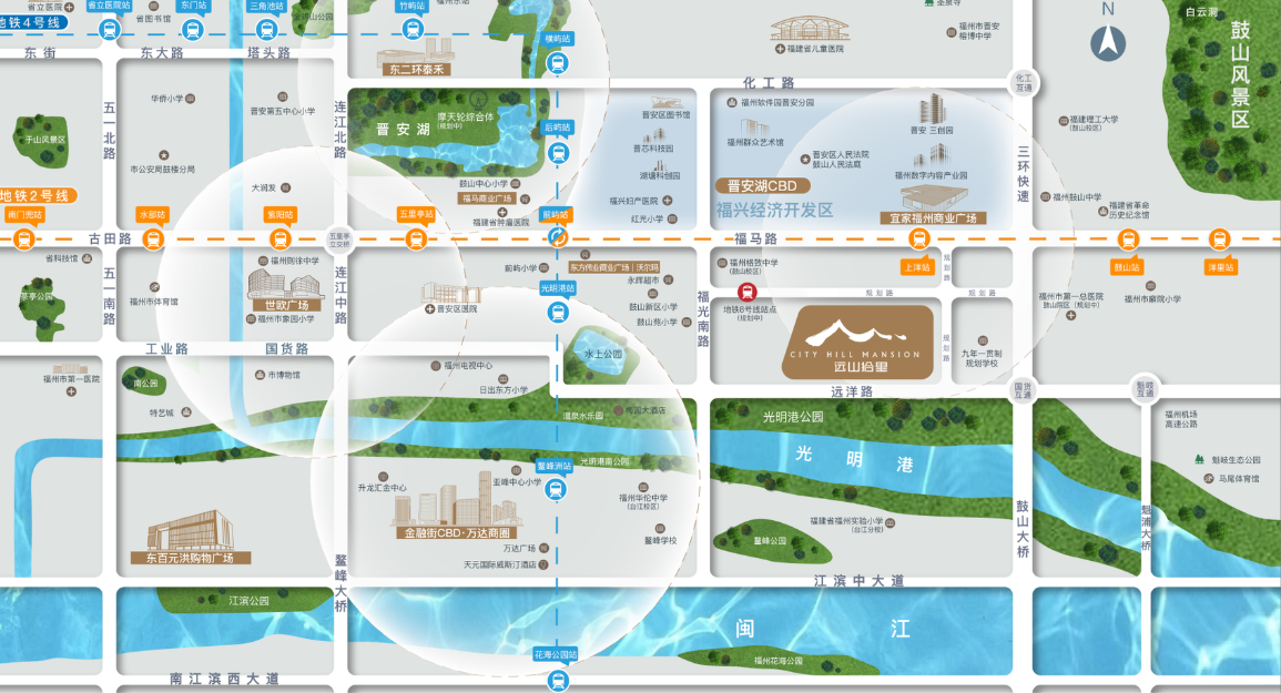福厝·远山拾里位于晋安区鼓山镇,地处二至三环之间,毗邻福马路、化工路等城市主干道,自驾出行较为便利,可快速连接东二环泰禾广场及台江商圈。