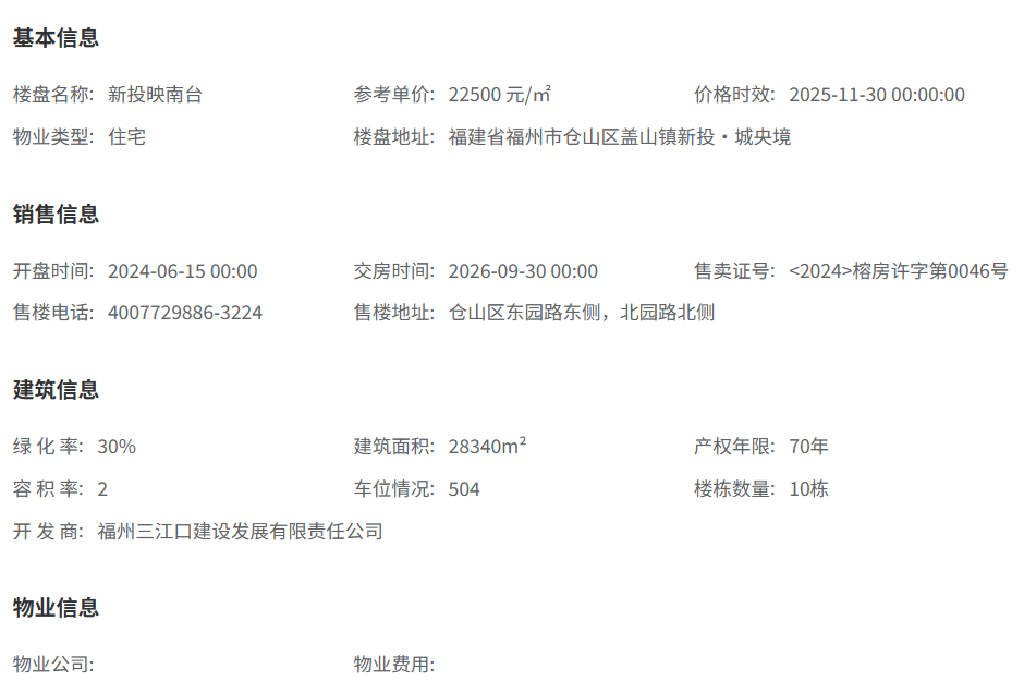 在福州仓山南二环板块的新房市场中,新投映南台(备案名:新投·城央境)以22500元/㎡的均价入市,成为许多购房者关注的焦点。