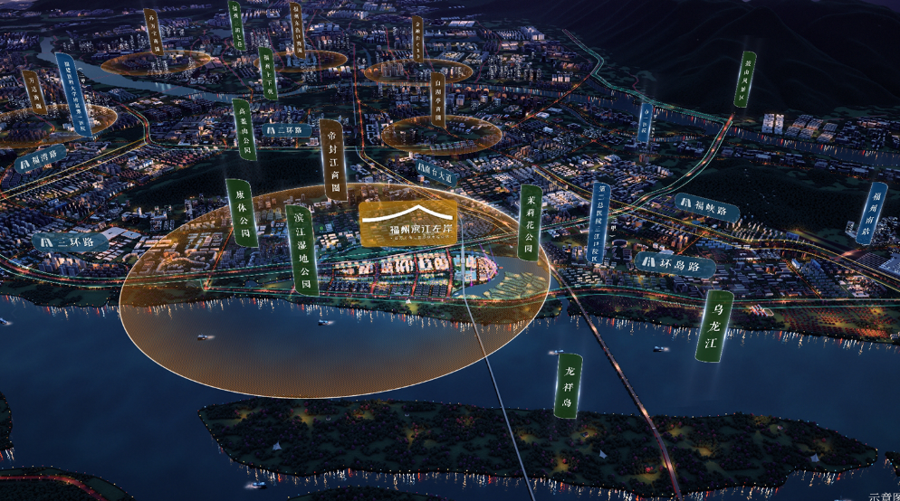 滨江左岸位于福州仓山区盖山镇,地处福州仓山区的南翼,毗邻闽江支流。作为这一区域的新盘,项目主打亲民价格和滨江资源。