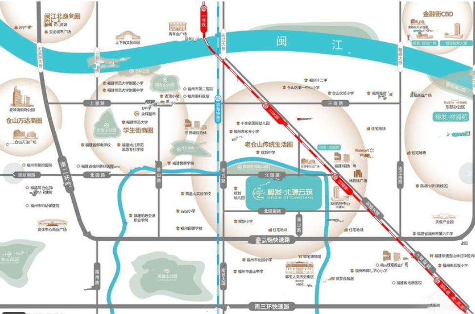 榕发北源云筑的周边配套呈现出“现状与规划并存,短期与长期结合”的特点。