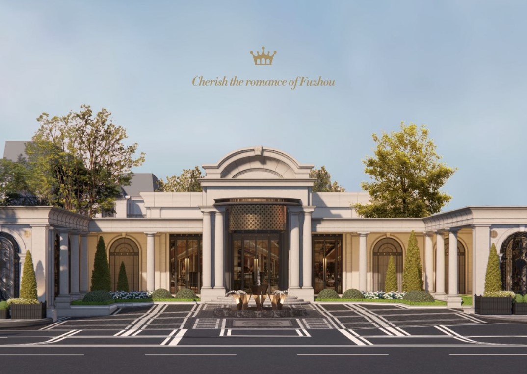 当福州市场充斥千篇一律的新中式和真石漆立面时,雍玺湾选择了“逆流而上”。项目采用纯正法式风格,并难得地运用了干挂石材外立面。