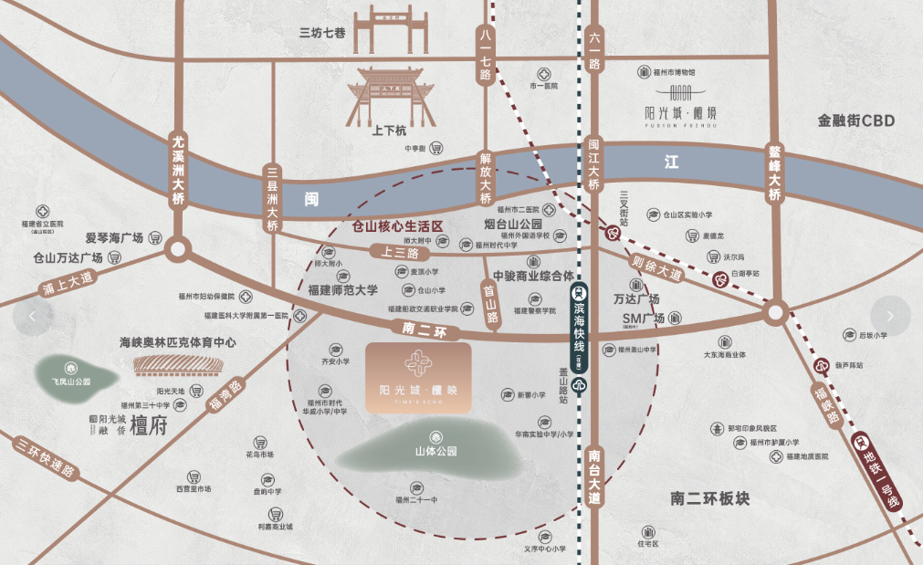 阳光城檀映坐落于福州南二环与首山路交叉口,这一地理位置赋予了项目极高的出行便利性。周边路网发达,不仅能快速连接南二环,还能便捷抵达市区各个方向,无论是自驾出行还是公共交通,都能满足居民的日常需求。