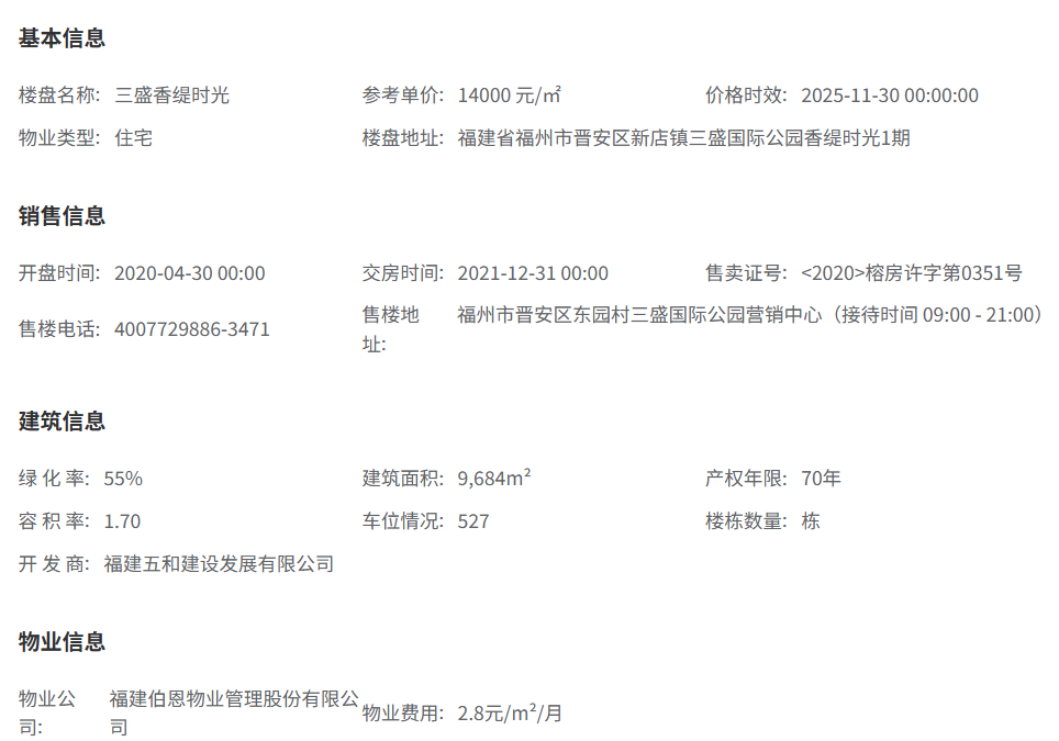 三盛国际公园·香缇时光二期于2019年建成,建筑类型包括板楼,物业类型为住宅。