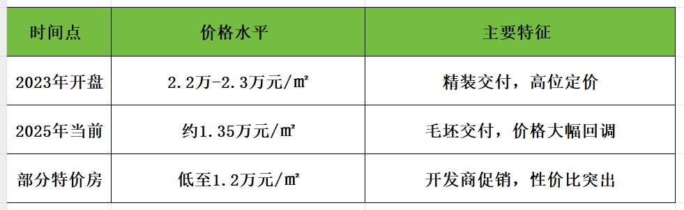 远洋天赋的价格波动是其最受关注的方面之一。项目在2023年开盘时,精装房价格曾达到2.2万-2.3万元/平方米,而到2025年,毛坯房价格已降至约1.35万元/平方米,部分房源甚至低至1.2万元/平方米。