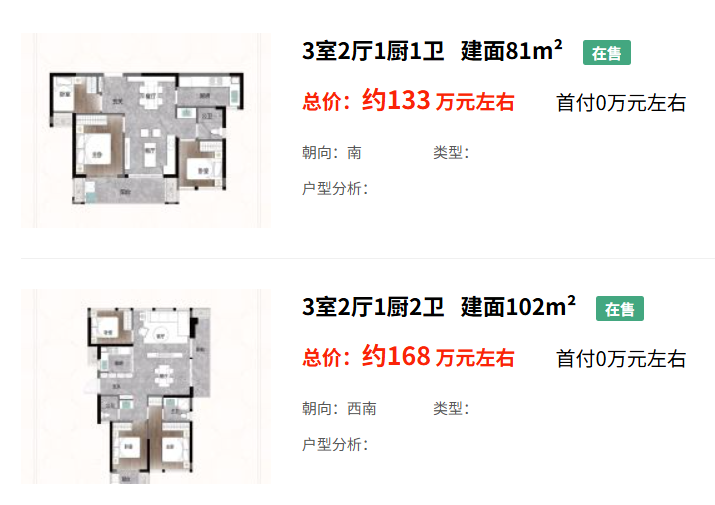 对于预算有限的购房者来说,项目小户型81㎡三房总价约130万元,大大降低了置业门槛。