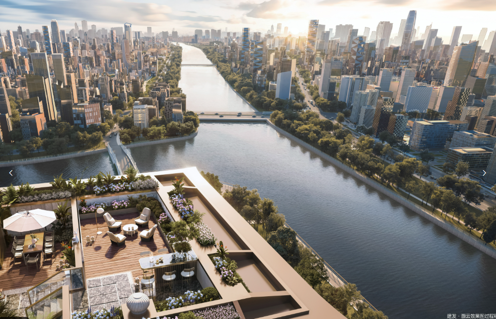 建发灏云位于福州晋安区岳峰镇,横跨约7000米的鼓楼运河畔,与凤坂河双河交汇,形成了一片双河环抱的半岛生态地块。
