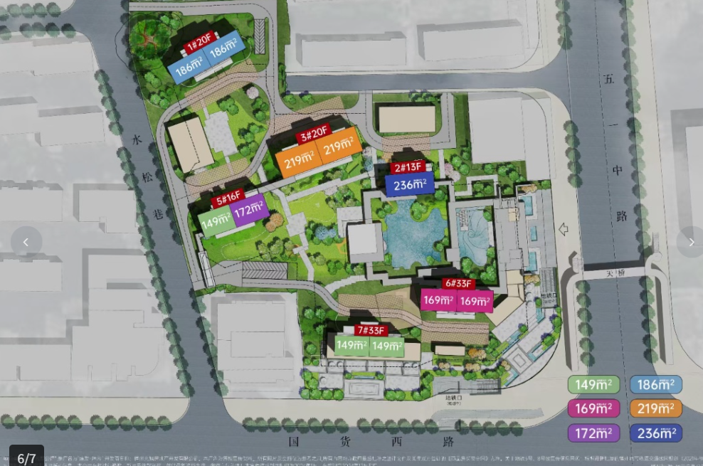 户型设计:项目主打149-238㎡的纯粹大户型,全部户型均为定制化设计。以149㎡四房为例,采用独立入户门厅、餐厨一体化设计,南向约14.1米大面宽;而238㎡五房则配备约17㎡私享电梯厅,三大阳光套房设计,满足高端家庭的多元需求。