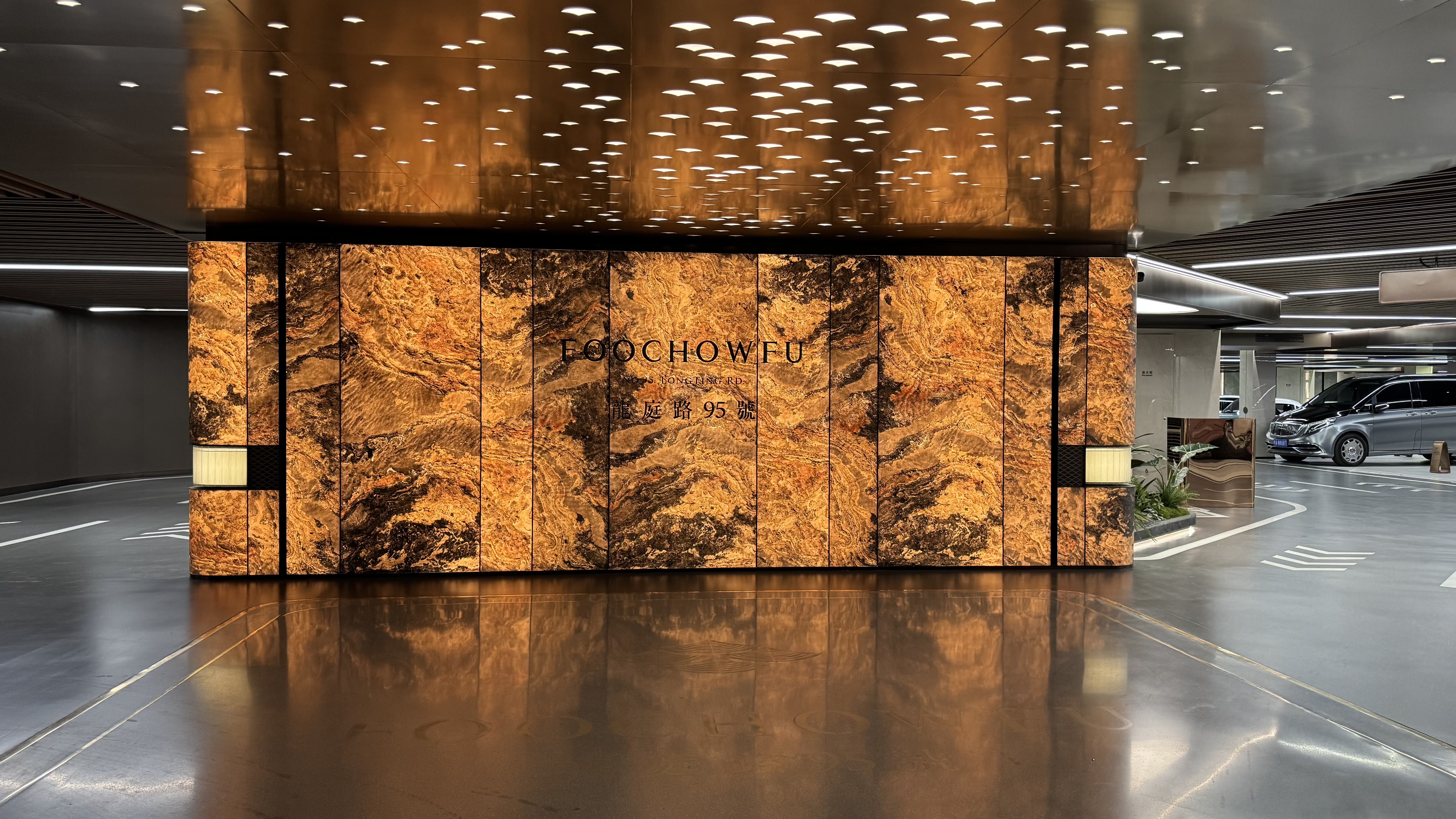 项目的车库同样采用全室内精装交付,通过星光顶贯穿,景观绿岛造景,进一步提升业主归家体验感。入口处设计宏伟壮观,60米超宽门头界面,45米长的弧形大挑檐,电动双开铜门采用三重蚀刻的精雕工艺,营造出尊贵且私密的氛围。