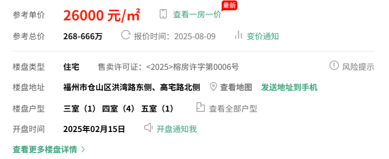 约26000元/平方米的均价,在金山板块属于中高端水平。这一价格不仅面临周边品质次新房的竞争,也需要与福州其他区域的新盘横向比较。购房者需结合自身预算,权衡为金山“成熟配套”所支付的溢价是否合理。
