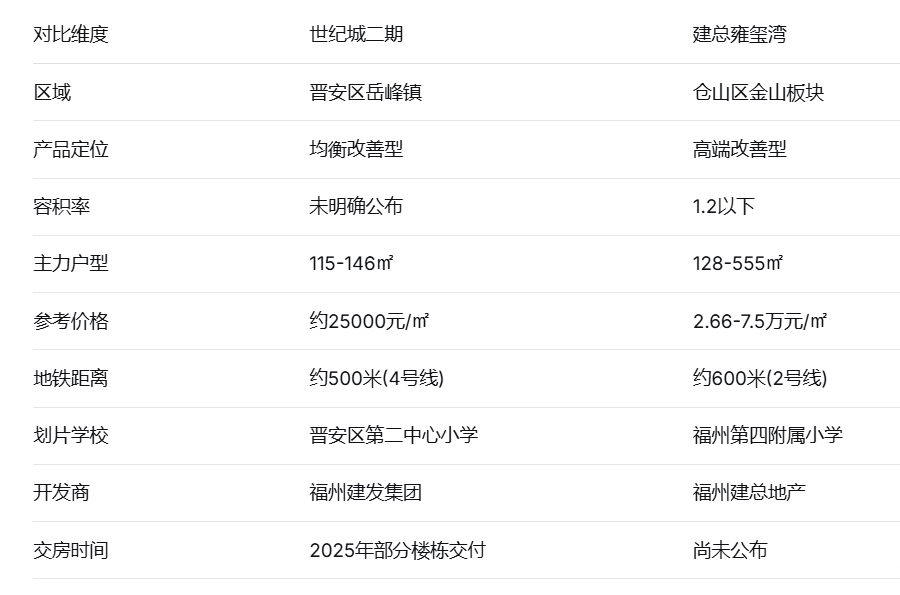 在福州楼市分化的背景下,世纪城二期与建总雍玺湾代表了两种不同的改善住宅方向。