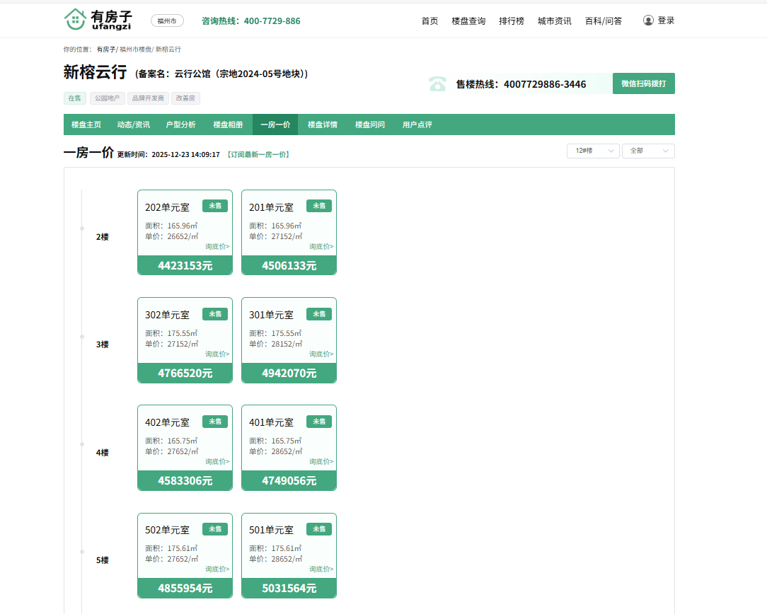 价格方面,根据2025年11月10日取得预售证的信息显示,新榕云行本次集中取证的8、11、12、16号楼,整体预售均价为29865元/㎡,为毛坯交付。具体到各楼栋和户型,价格有所差异: