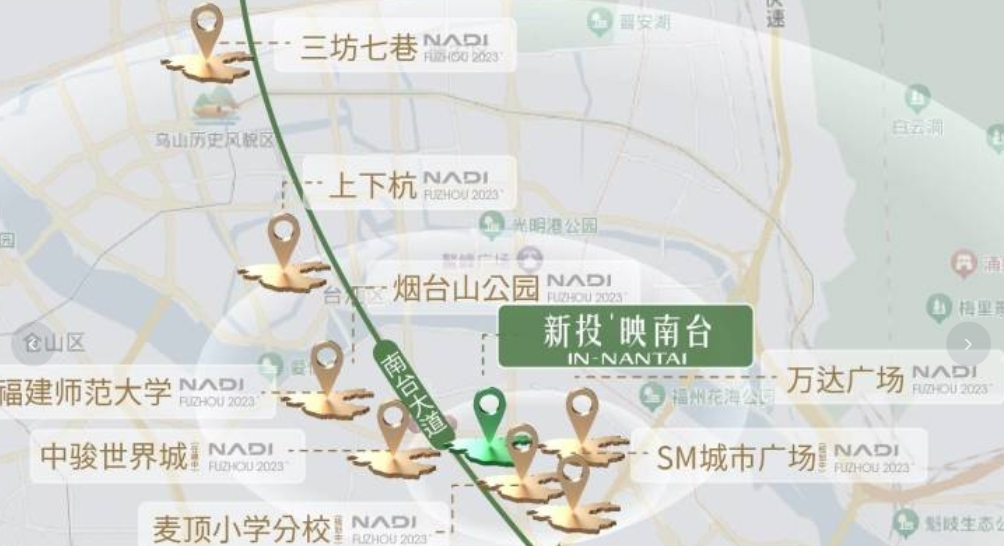 新投映南台紧邻南台大道这条城市主干道,可快速连接南二环、则徐大道等,驱车前往仓山老城区、台江乃至鼓楼都较为便利。