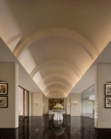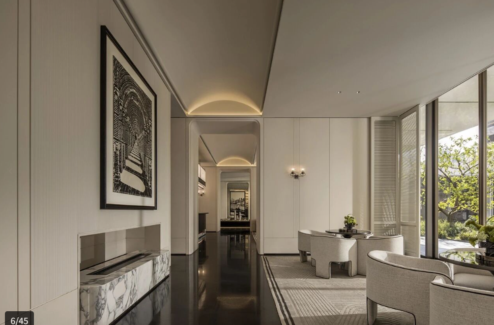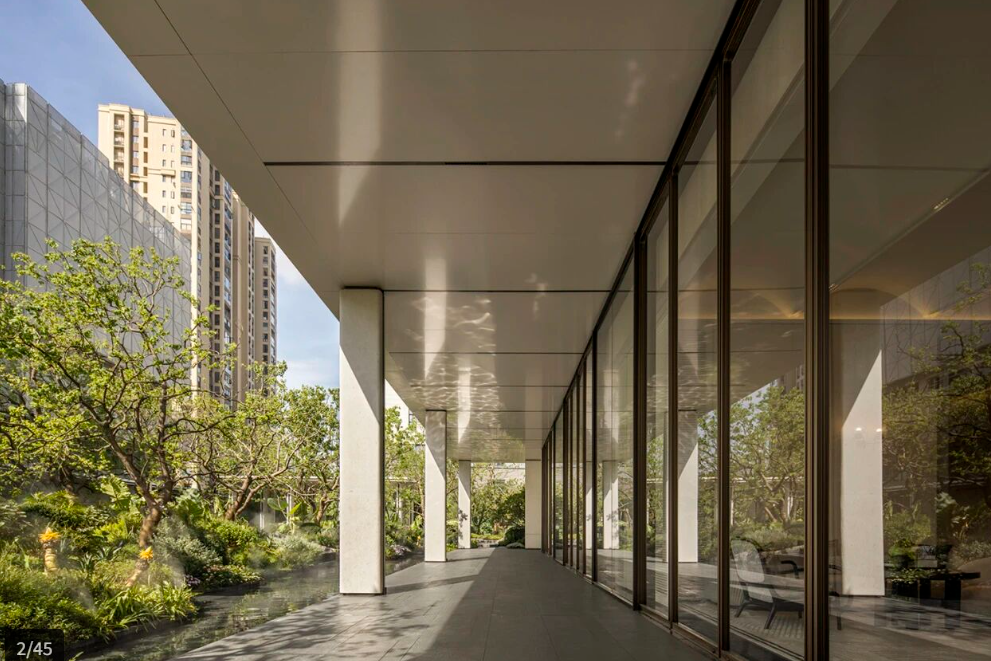 建筑外观采用银灰色铝板结合LOW-E中空玻璃建造,打造出现代性与尊贵感并重的城市豪宅地标。社区规划涵盖了住宅区、品质商业、精奢酒店和创意办公,是一个小型城市综合体。