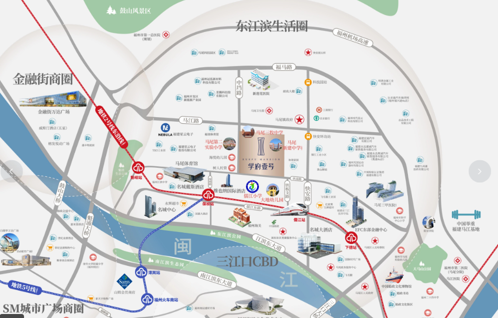 交通出行:项目毗邻马尾隧道、江滨东大道等主干道,自驾前往福州主城区的台江、东二环等核心商圈较为便利。