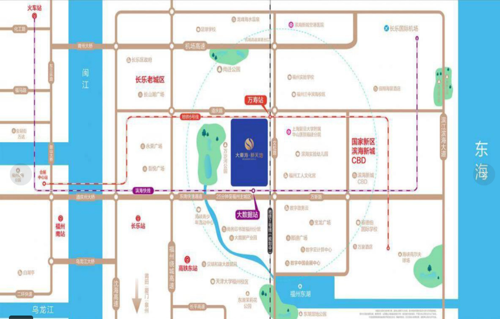 傍晚的东湖畔,站在大东海新天地的观景台上,你可以看到福州滨海新城CBD的璀璨灯火次第亮起。这个位于福州未来城市核心区的项目,不仅是一个住宅区,更是承载着城市“东进南下”战略下的生活想象。 01 项目定位