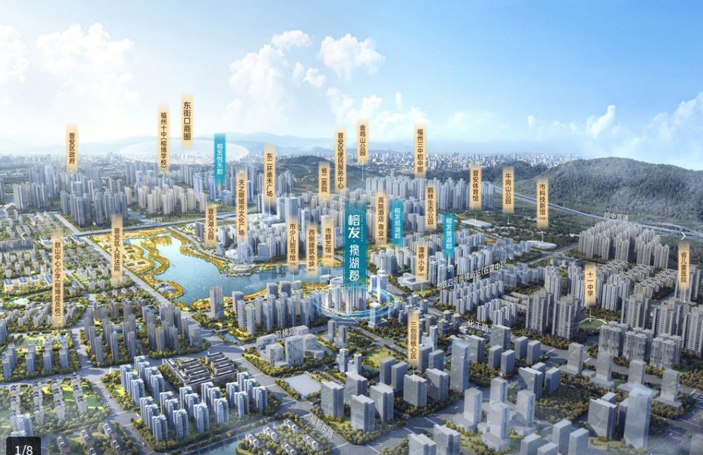 不过,项目在几个关键价值点上具有优势。一是稀缺的湖景资源,晋安湖公园占地约千亩,与牛岗山公园、鹤林生态公园串联成总面积超2000亩的“中央公园”。