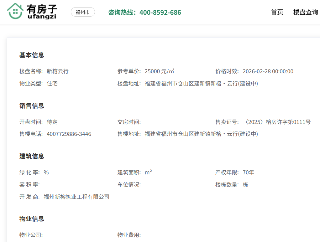 新榕云行的开发商为福州新榕筑业工程有限公司,是福州古厝集团下属的二级企业。