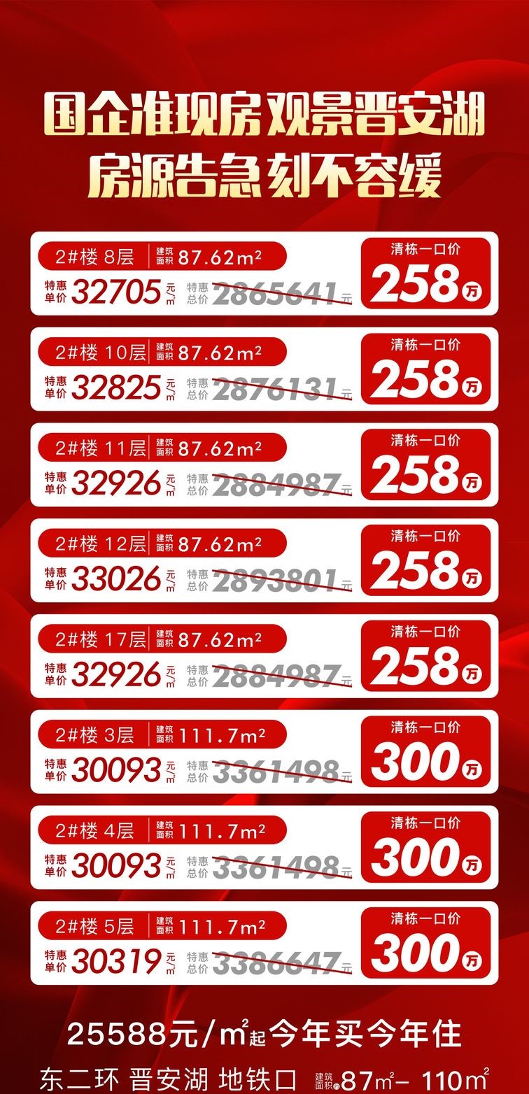2#楼8层建筑面积约87.62㎡,特惠单价32705元/㎡