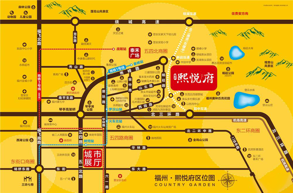 除地理位置优势外,福州熙悦府周边的配套设施精彩纷呈。楼盘周边有多维城市配套,距离新店外环路约5公里,便捷抵达东二环泰禾广场、五四北泰禾广场和i33城市广场等三大商圈,满足居民各类需求。