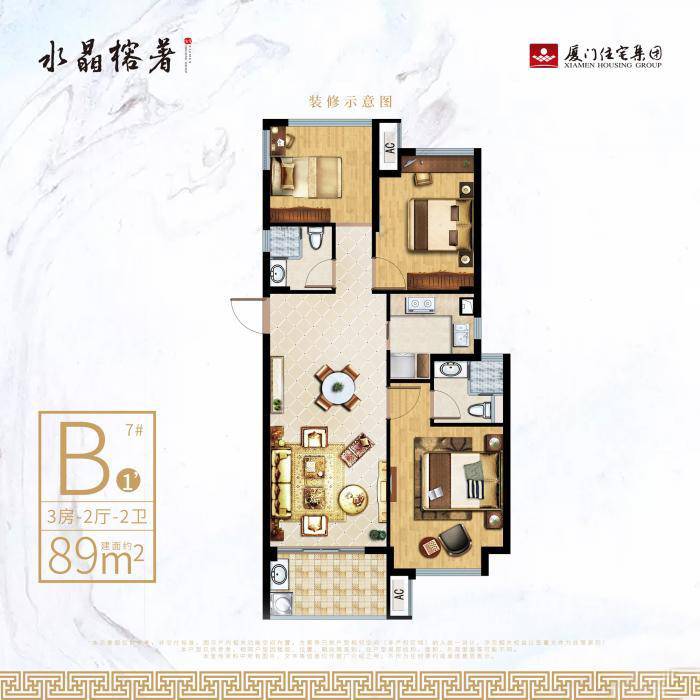 【明星户型】水晶榕著提供多种明星户型选择,其中建筑面积约69平方米的两室两厅一卫南北通透两居室,动静分区,市场上少有的小户型,非常适合投资或刚需自住;建筑面积约89平方米的三室