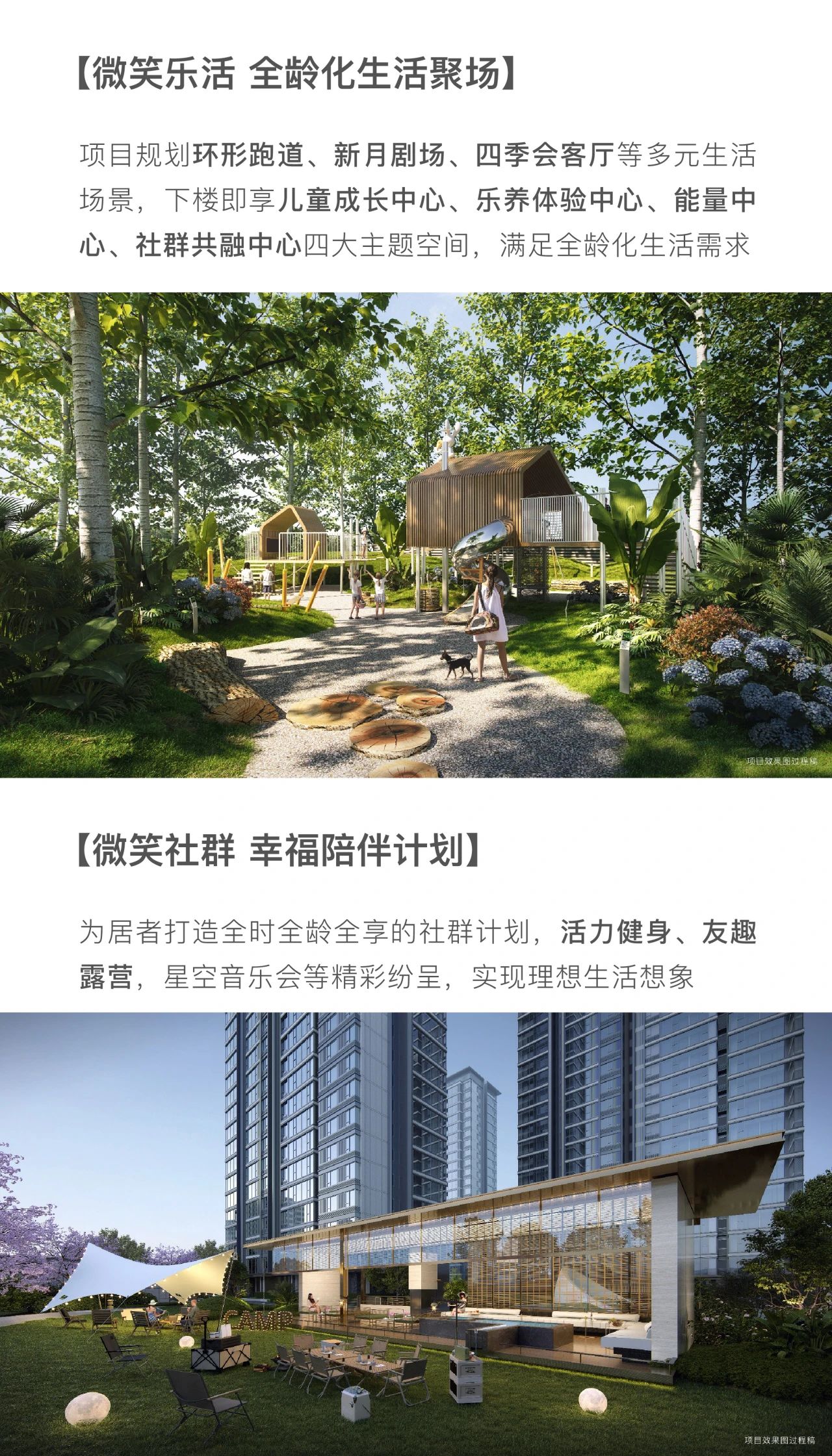 全龄社区与丰富活动 建总云璟未来不仅仅关注硬件设施的建设,更注重社区文化的培育和居民精神生活的丰富。项目内部规划了全龄化的生活设施,如环形跑道、新月剧场、四季会客厅等,这些设施不仅为居民提供了休闲娱乐的场所,也成为了他们交流互动的平台。通过全时全龄全享的社群计划,项目组织了各类活动,如活力健身、友趣露营、星空音乐会等,这些活动不仅丰富了居民的业余生活,也增强了社区的凝聚力和居民的归属感。