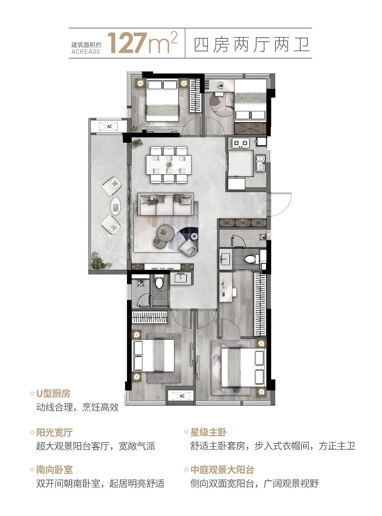 多元户型与全龄化设计 项目主推的户型面积从79到127平方米不等,涵盖了3至4居室的设计,满足了不同家庭结构和生活需求。每一户都经过精心设计,充分利用空间,实现了功能与美学的完美结合。而全龄化的设计理念,则让社区内的每一个年龄层都能找到属于自己的生活空间。