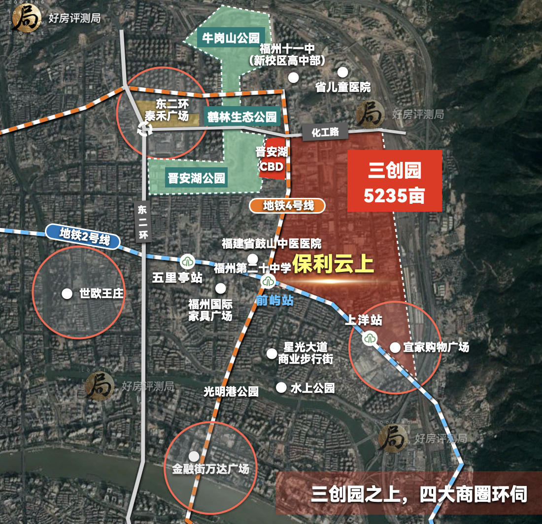 保利云上项目坐落于福州的核心区域,晋安湖三创园,这里不仅是福州的经济热点,也是文化与科技的交汇点。项目周边拥有福州四大顶级商圈——世欧王庄、东二环泰禾、金融街万达及宜家综合体,这些商圈汇聚了众多国际品牌和高端服务,无论是购物、娱乐还是餐饮,都能轻松触达,尽享都市繁华。这种便捷的生活圈,为居民提供了极大的生活便利,也提升了居住的品质感。