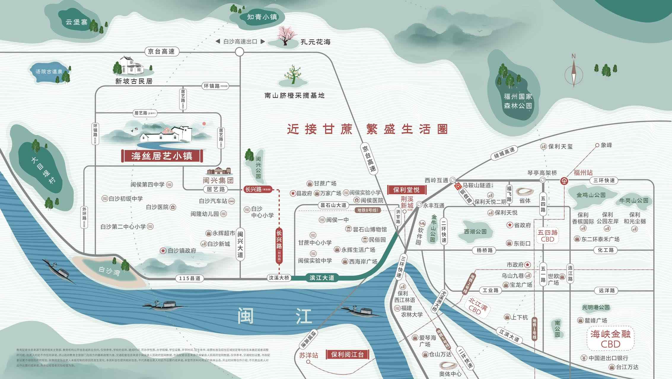 在外部配套方面,项目周边两公里范围内拥有白沙中心卫生院、白沙医院等医疗资源,为居民的健康保驾护航。而在三公里范围内,则有闽侯第四中学、白沙初级中学、白沙中心小学等多所教育资源,为子女教育提供了良好的保障。此外,项目的交通条件也十分便利,距离福州市区的自驾时间仅需约30分钟,这为居民的出行提供了极大的便利。