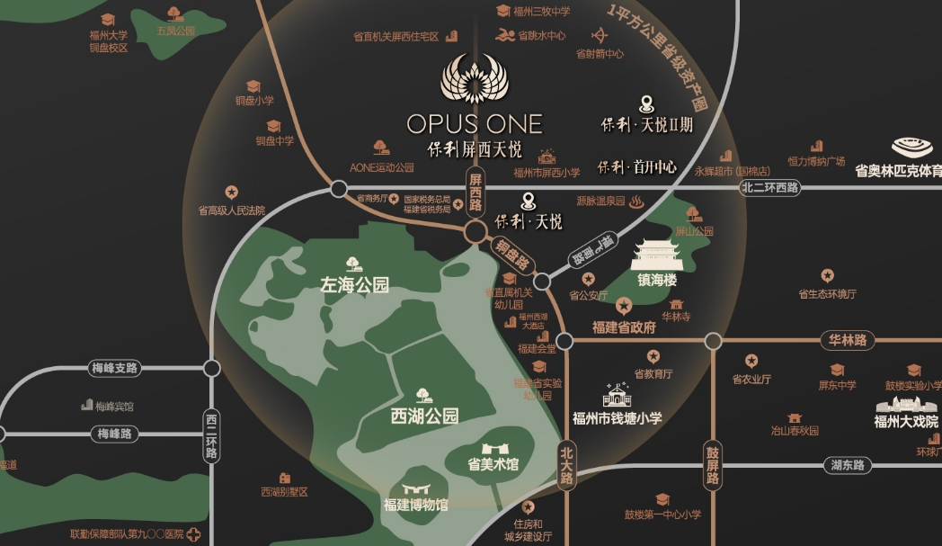 保利屏西天悦的交通优势不容小觑。项目西临屏西路,南接铜盘路,这两条城市主干道将二环与三环紧密相连,确保居民能够快速通达福州的各个角落。此外,项目周边的公共交通网络也十分发达,500米范围内设有5个公交站点,共有19条公交线路交织其中,为居民的日常出行提供了极大的便利。