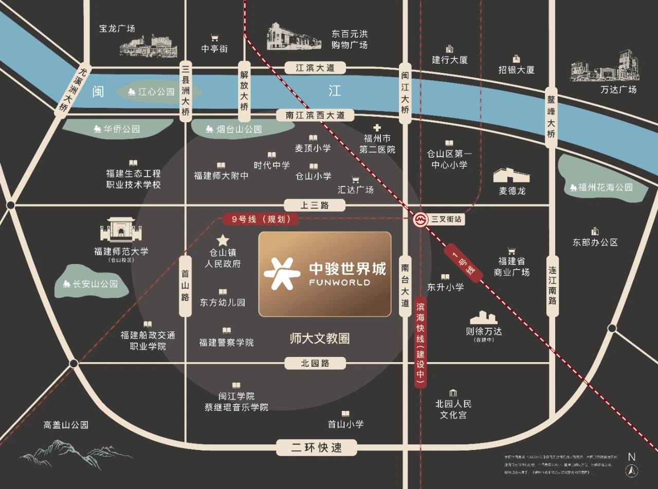 中骏世界城璟悦坐落于福州二环内老仓山片区,这一核心地段为其带来了得天独厚的优势。为保持这一优势,楼盘规划为约45万平米的国际TOD都会综合体,与周边环境完美融合,共同推动区域发展。交通方面,项目坐拥三条地铁线,公交线路也十分发达,确保了居民出行的便捷性。商业配套方面,紧邻中骏世界城购物中心,为居民提供了丰富的购物选择。教育和医疗设施同样完善,与周边机构保持良好合作,共同提升居住品质。
