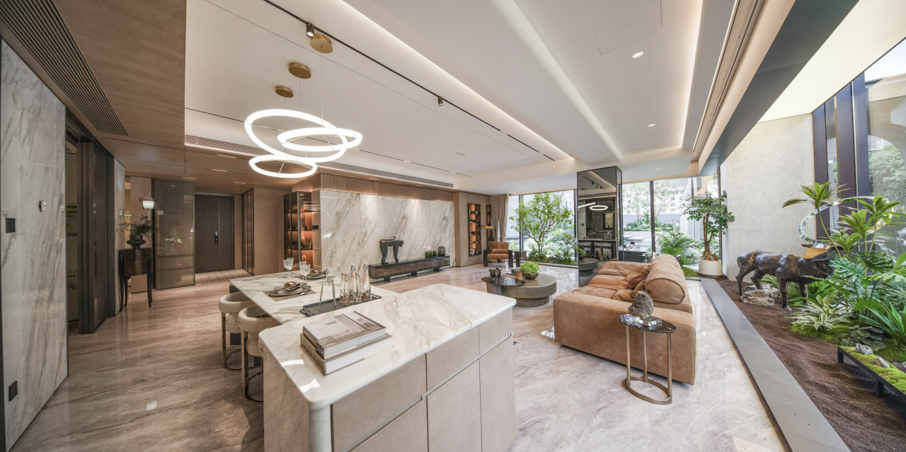 在硬件配置上,屏西天悦也是毫不逊色。厨房采用了米其林餐厅同款的瑞士百年家电品牌瑞族的冰箱与蒸烤箱,方太18件套洗碗机、抽油烟机,大金专用空调以及博洛尼橱柜,每一项配置都是对世家顶级生活的深度诠释。星级豪华主卧同样大牌云集,设有美妆冰箱的科勒多功能镜柜、简一仿大理石瓷砖、德国唯宝双台盆,将“大家化”的生活尺度与尊崇深刻演绎。