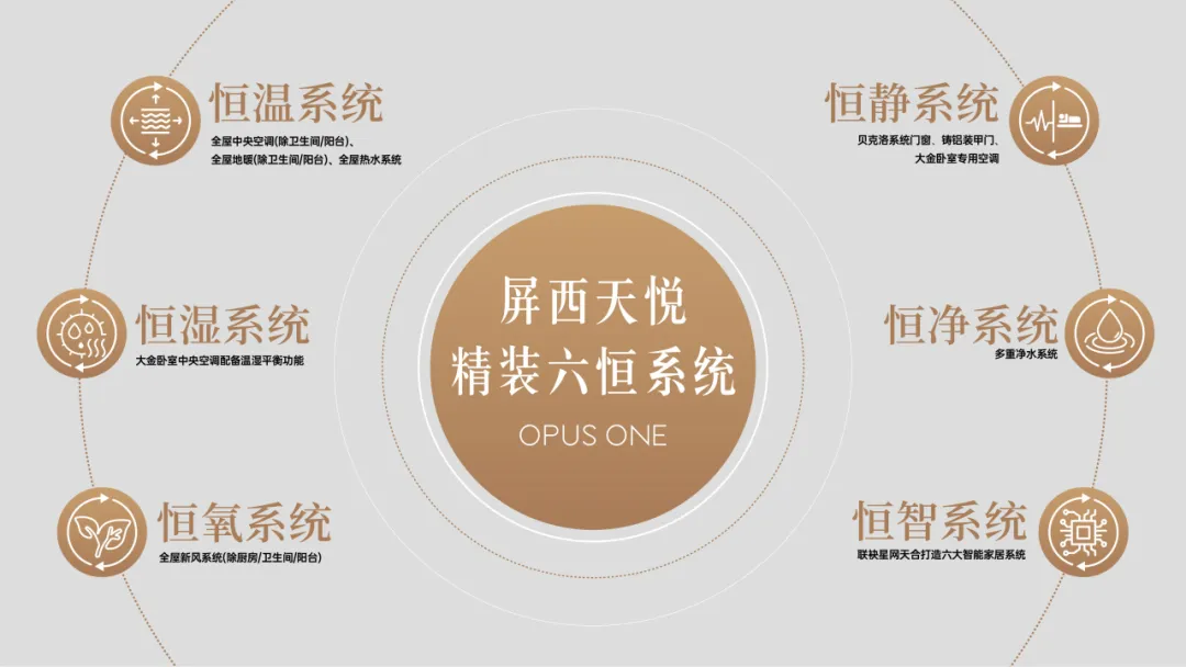 在智能化方面,屏西天悦更是走在了时代的前列。项目引入了六恒科技系统(恒温、恒湿、恒氧、恒静、恒净、恒智),以精准的智能感知,主动关怀每一位家庭成员的独特需求与生命力。此外,还配备了超配地暖,完美匹配高阶家族的极奢享受,让凛冬阖家围坐的想象演变为现实。