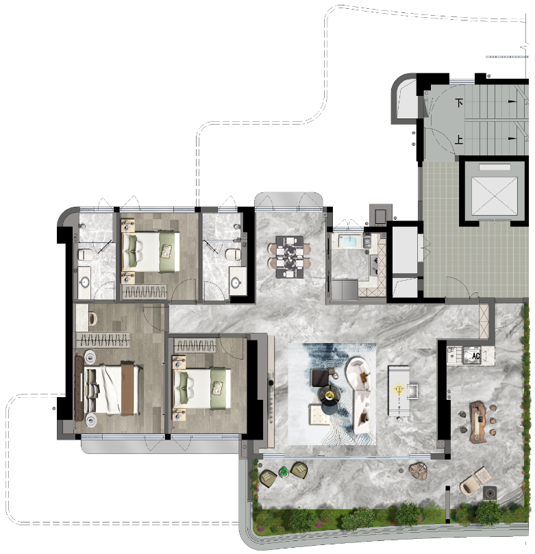 榕发誉湖项目采用了最新的堂心户型设计,这种设计理念旨在最大化空间利用率,同时确保居住的舒适性和私密性。连片大露台的设计更是项目的亮点之一,它不仅极大地延展了居住空间,还为居民提供了丰富的户外活动空间,使他们能够更好地享受自然风光和城市景观。此外,项目的建筑外观和内部布局均经过精心设计,以现代简约的风格为主,融合了传统与现代的元素,展现出独特的美学魅力。