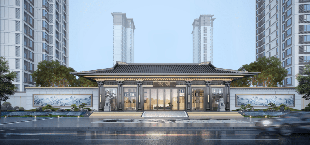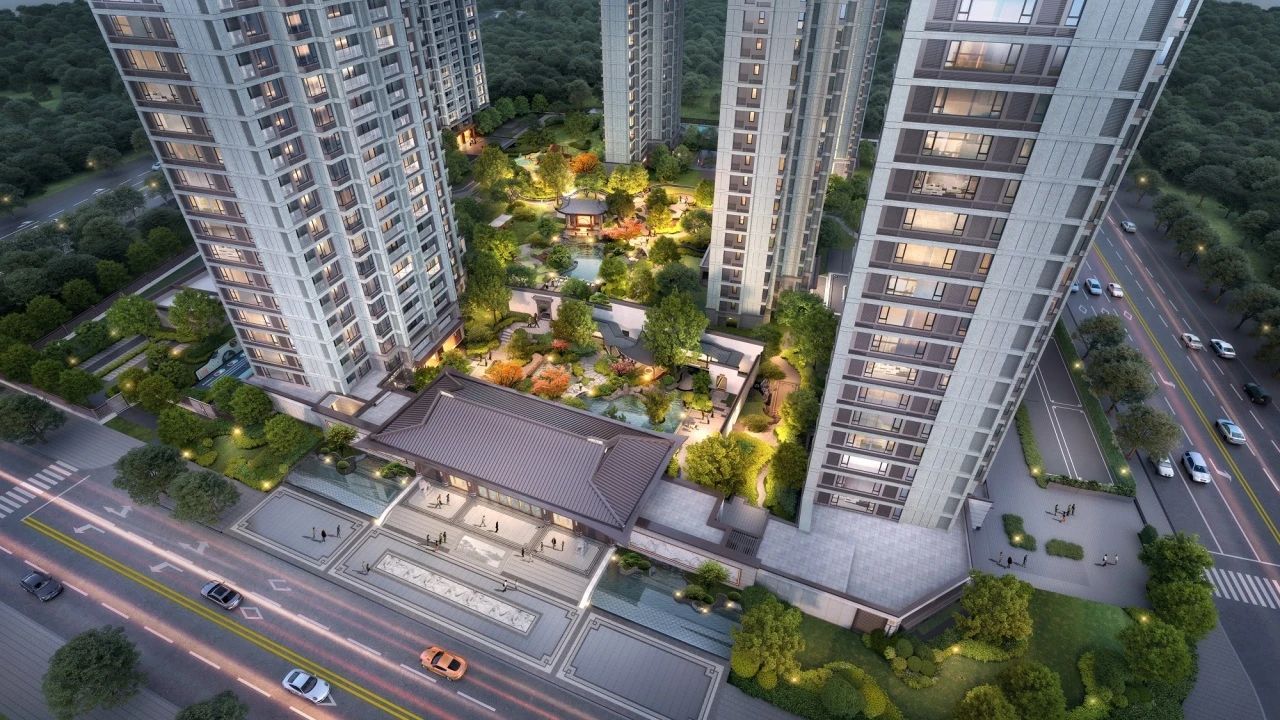 项目共有7栋楼,采用围合式布局,这种布局方式不仅有利于社区的内部交通和安全,还能最大限度地利用土地资源,提高居住舒适度。建筑外观融入了“儒门、道园、唐风、华纹”的新中式匠造理念,打造了三进归家礼序,呈现出东方王府风范。