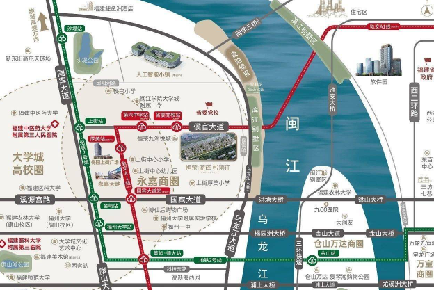 恒荣蓝泽悦滨江坐落于福州闽侯上街侯官大道,其地理位置的优越性不仅体现在当前的便利性上,更彰显了开发商的前瞻性眼光。该项目地处闽侯的核心区域,周边汇聚了众多高精尖人才,形成了一个充满活力和创新氛围的生活圈。此外,项目紧邻闽江,居民可以享受到美丽的江景,这种自然景观的融入,为居住环境增添了一份宁静和和谐。从长远来看,随着福州城市发展的不断推进,闽侯地区作为连接福州主城区与周边县市的重要纽带,其发展潜力巨大,将为居民带来更多的生活机遇和增值空间。