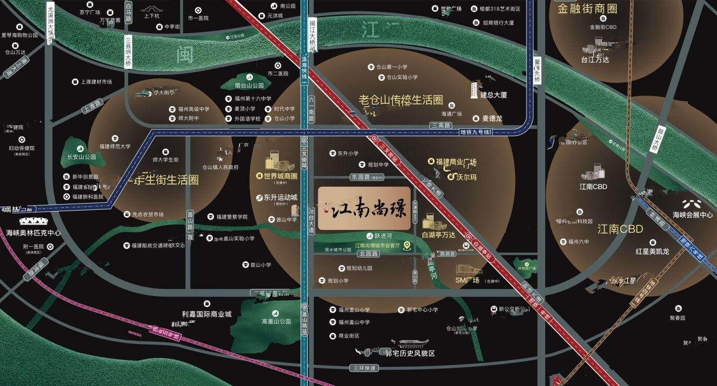 建总江南尚璟是福州房地产市场中的一个标志性项目,由总资产超过千亿的大型企业——建总地产精心打造。该项目不仅地理位置优越,而且在交通、商业、教育、生态环境以及医疗等方面均展现出显著的优势,成为了福州城市更新和人居改善的重要典范。建总江南尚璟坐落于福州“东扩南进”战略的核心区域,即仓山轴心地带。这一地理位置的选择体现了开发商对城市未来发展趋势的深刻洞察。仓山区作为福州的传统居住区,近年来随着城市规划的推进,已经成为福州新的经济和文化中心。项目的这一位置,不仅继承了仓山区的历史文化底蕴,也享受到了城市发展的最新成果。