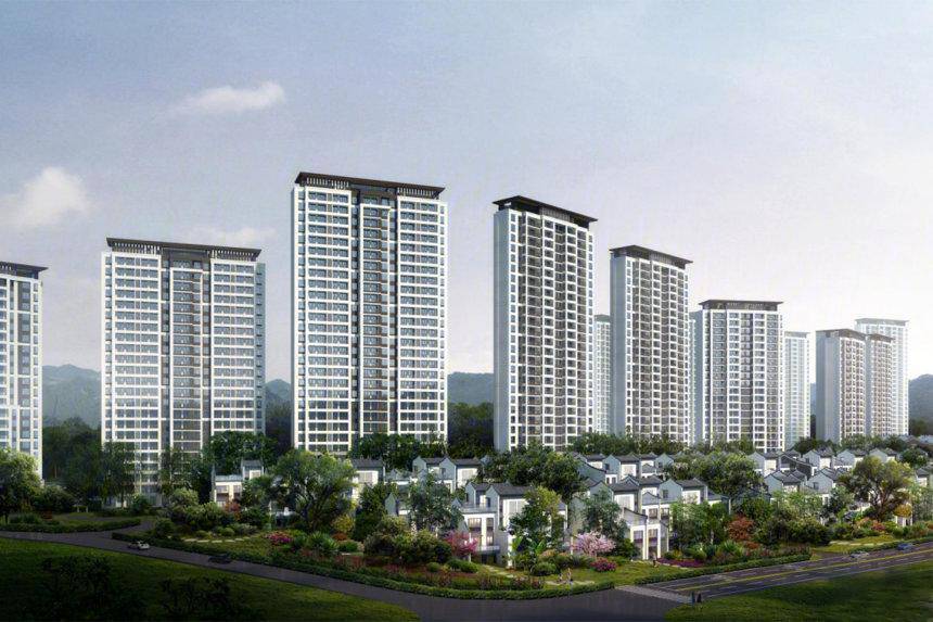 建筑风格融合了现代与传统元素,既展现了现代建筑的简洁线条,又不失传统文化的韵味,形成了一种独特的建筑美学。建筑布局精心规划,园林景观设计独具匠心,成功地将自然美景与现代生活完美融合。
