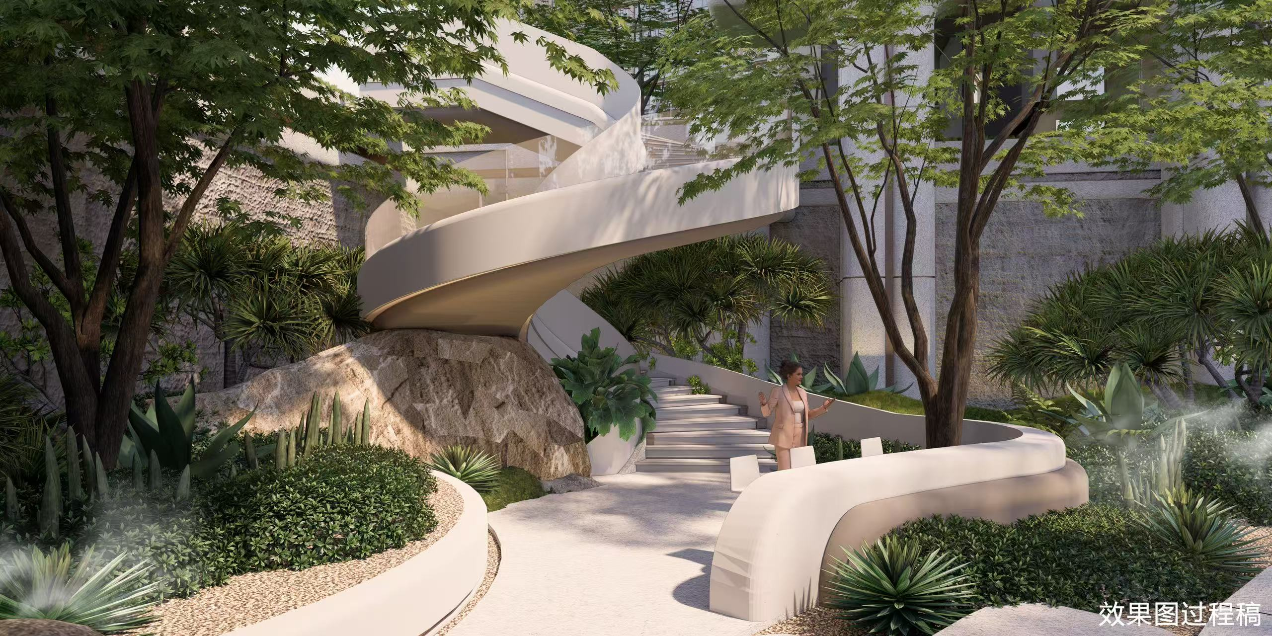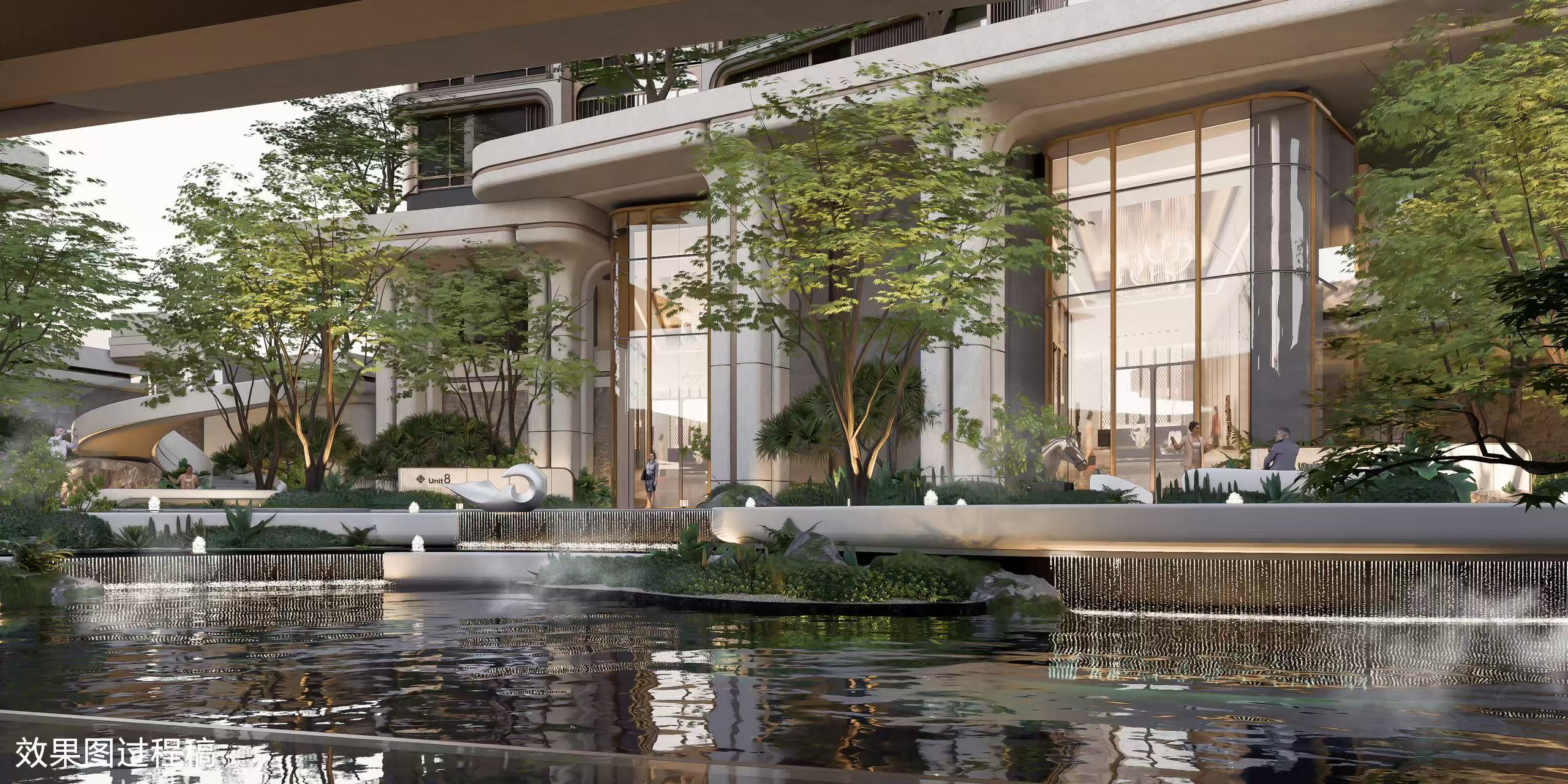 社区采用环抱式布局,打造市中心稀缺的峡谷式改善住区。外立面为米白色石材与深灰色铝板搭配,社区配备下沉式会所、无边际泳池等高端设施。