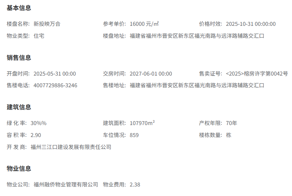 新投映万合是福州新东区的一个刚需兼刚改型住宅项目,由福州新投集团开发,这是一家福州国企,资金实力相对稳定。