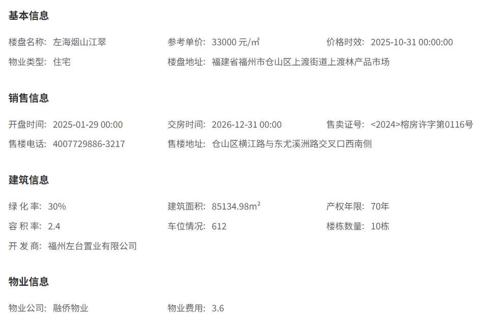 在福州仓山南江滨板块,左海烟山江翠(备案名:左海望悦)作为2025年备受关注的新盘,以其稀缺的江景资源和纯改善定位吸引了不少购房者的目光。项目位于福建省福州市仓山区上渡街道上渡林产品市场(南江滨西大道与鹭岭路交汇处),均价约33000元/㎡,主推127-166㎡大户型。 01 项目概况