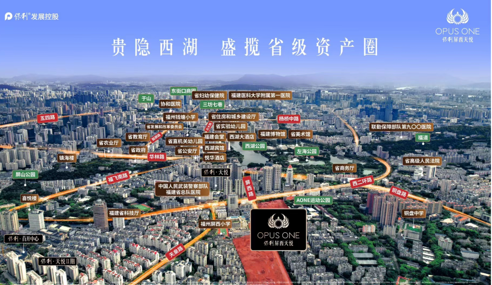 保利屏西天悦 坐拥福州鼓楼核心资源,融合稀缺生态与顶级配套,正重塑高端住宅新标准。作为保利TOP级“天悦”系著作,落户福州鼓楼芯,凝聚了保利十年三会西湖的营造经验,以全球仅12座天悦的稀缺基因,为福州精英阶层打造了一处兼具地段价值与品质生活的典范住区。 01 核心区位