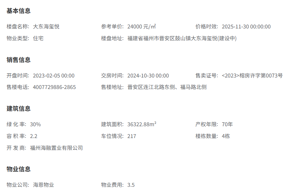 大东海玺悦由福建日出东海投资有限公司开发,项目占地23.7亩,总建面约3.6万方,由4栋高层组成,规划户数仅217户,打造低密宜居社区。