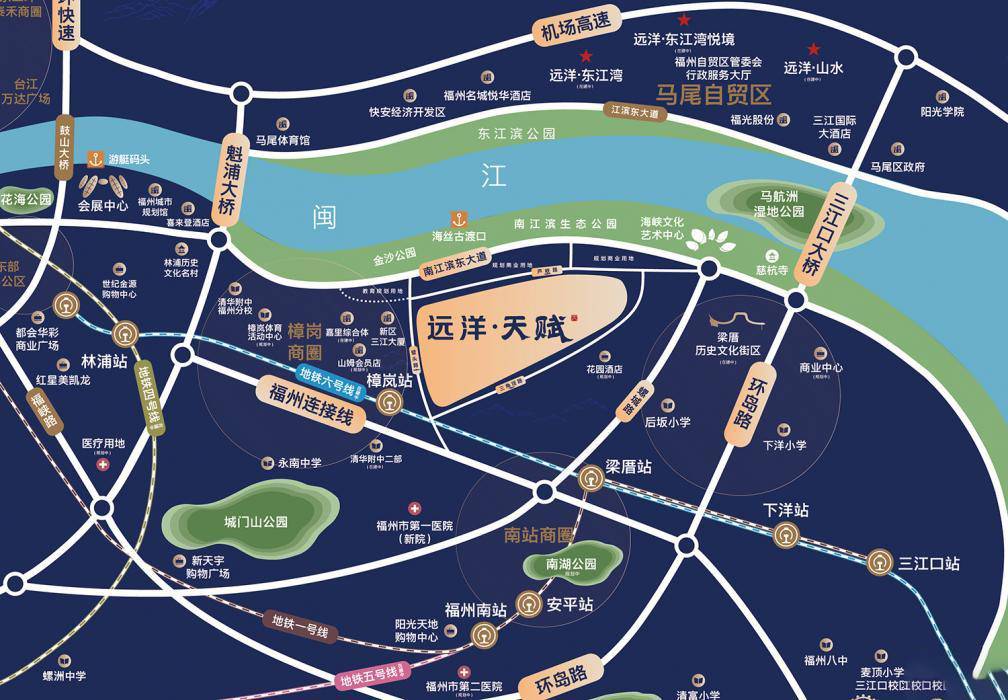 远洋天赋位于福州仓山区三江口板块,是一个定位改善型需求的住宅项目。作为远洋集团“万和系”产品,该项目主打新中式建筑风格,总占地面积约99亩,容积率仅为1.56,规划建设19栋高层住宅、8栋叠拼别墅以及一所幼儿园。