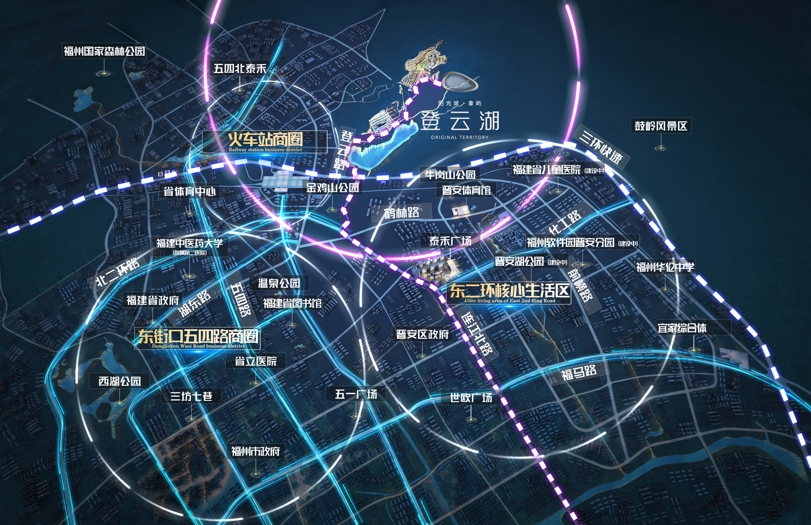 教育医疗:项目规划有幼儿园、九年制学校等教育配套。晋安湖实验小学已于2024年9月招生,划片范围包含登云湖。医疗方面,周边有省二人民医院东二环分院、省儿童医院(建设中)、协和医院等医疗资源。