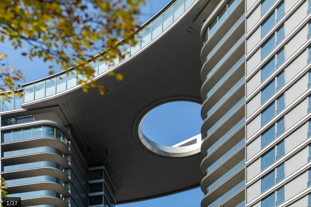 这个被称为“福州版凯旋门”的项目选择了双塔造型设计,使用银灰色铝板与LOW-E真空玻璃,86套房源均为235平方米至283平方米的大平层设计。
