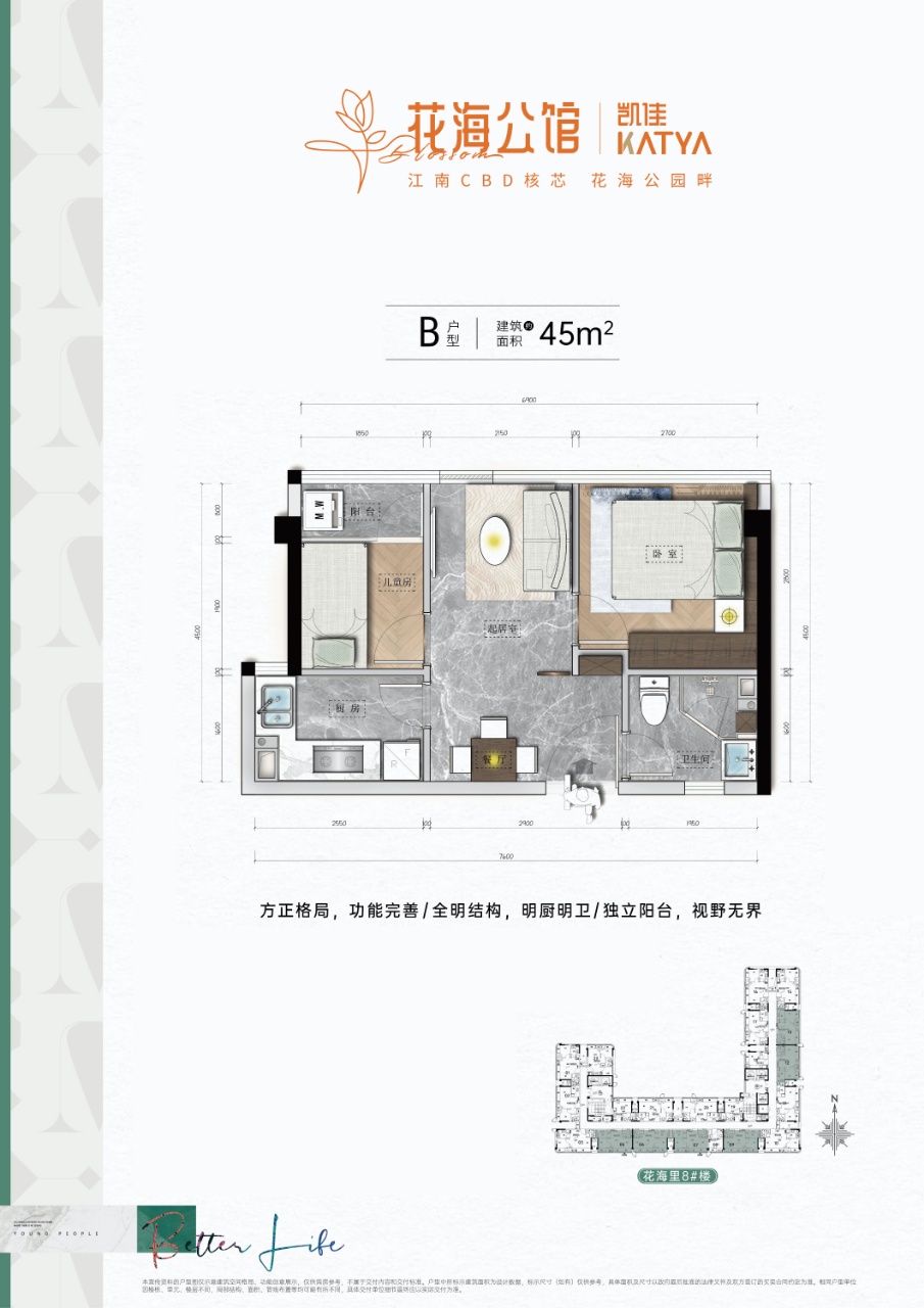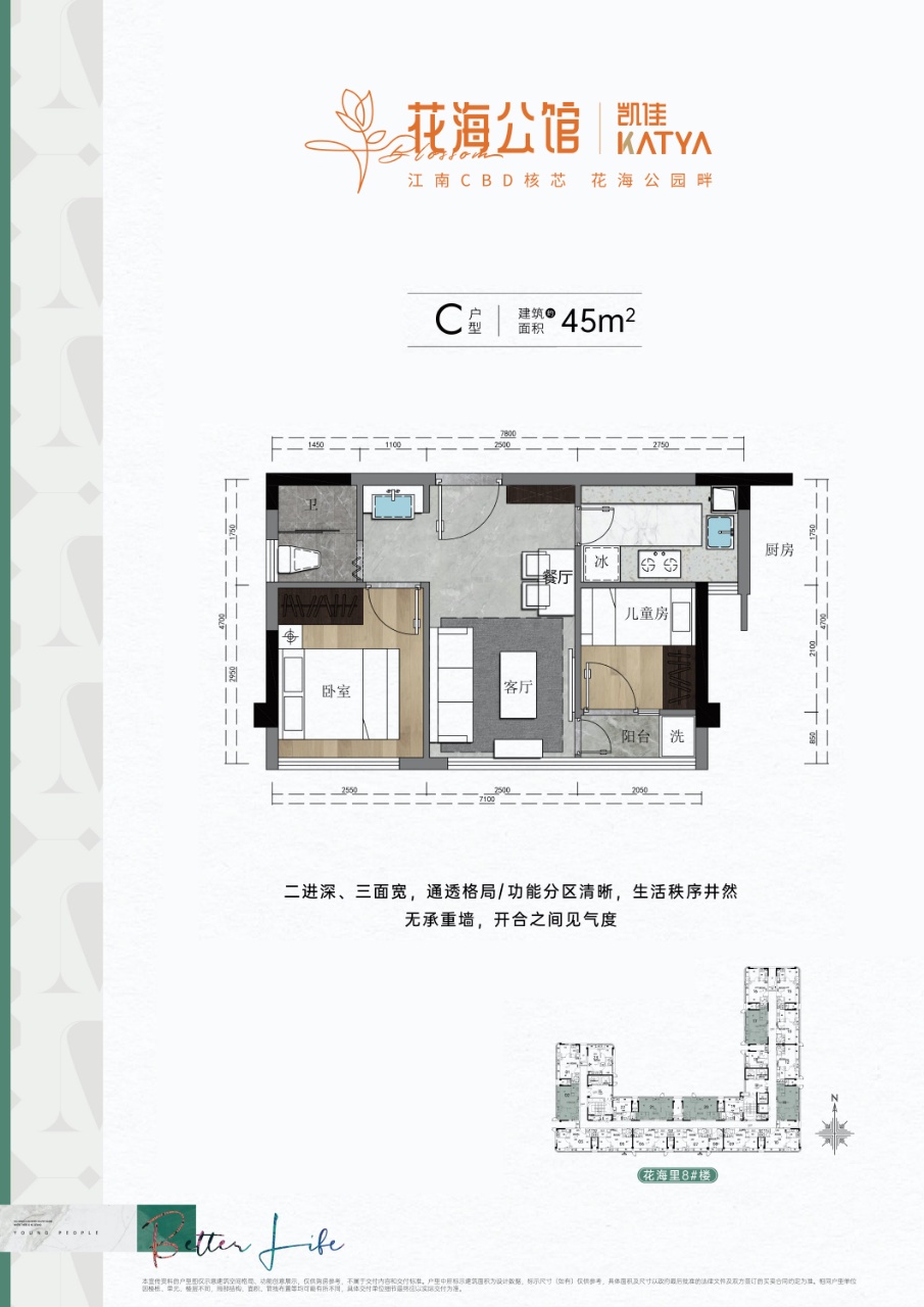 户型功能局限性:尽管45平方米的户型设计注重功能性与空间利用率,例如部分户型可实现两房功能,但受限于面积,其空间尺度感与多功能分区对于有孩家庭或追求改善型居住体验的群体来说,可能仍会感到局促。